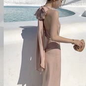 ホルターネックのリボンデザインが