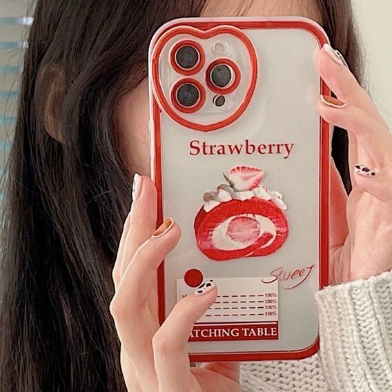 KT-0432 クリア フレーム ハート ストロベリーケーキ チーズ シンプル iPhone スマホケース お洒落 キュート 可愛い