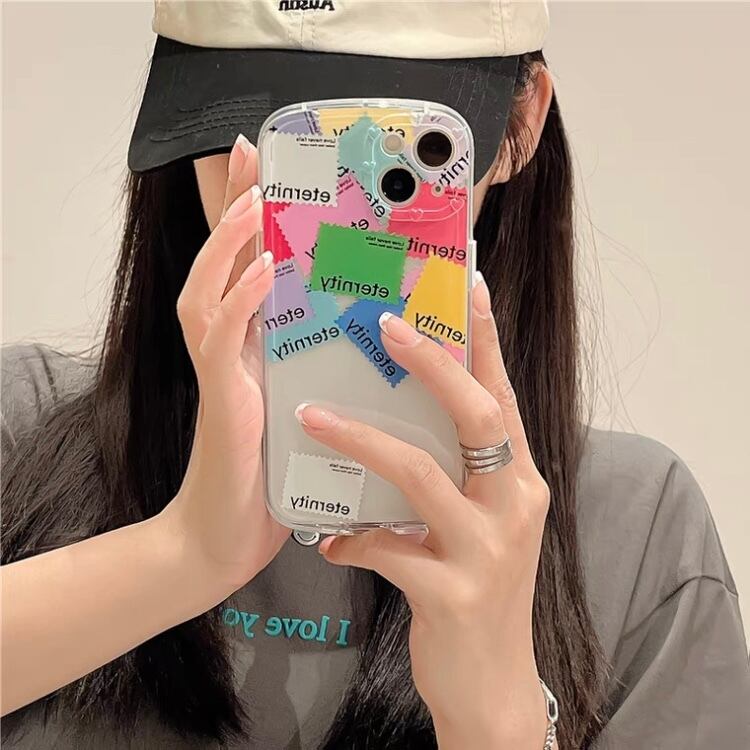 KT-0438 カラー ラベル クリア シンプル iPhone スマホケース お洒落 キュート 可愛い ポップ ユニーク
