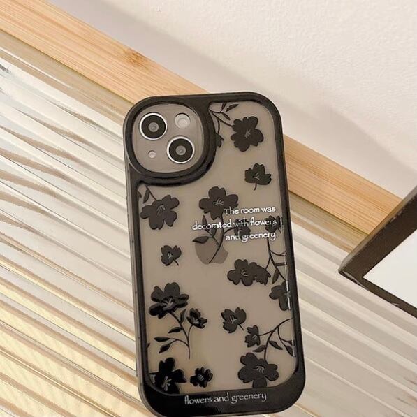 KT-0442 ブラッククリア フラワー モノトーン シンプル iPhone スマホケース お洒落 キュート 可愛い クール