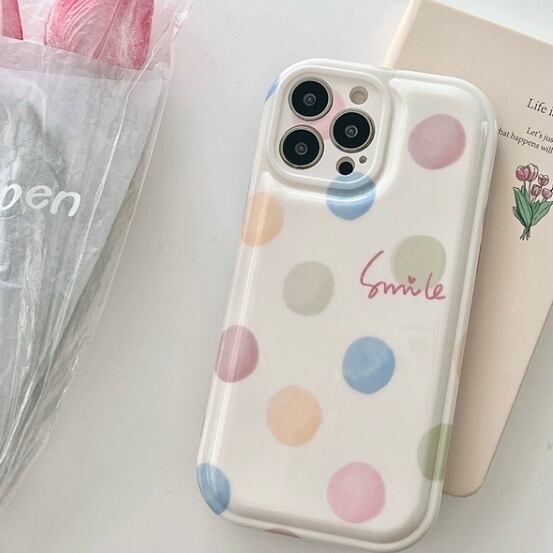 KT-0450 パステルカラー 水玉模様 イラスト ポップ シンプル iPhone スマホケース お洒落 キュート 可愛い