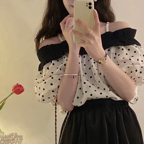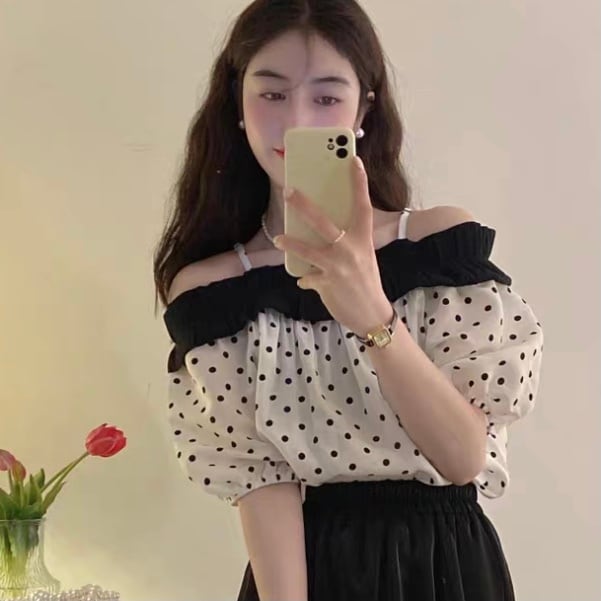 ▫️水玉フリルオフショルトップス