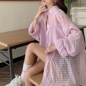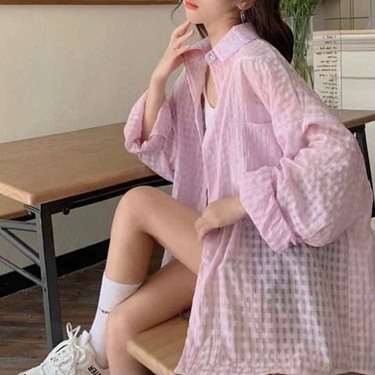 BL-0261 フェアリー チェック柄 シャツ ルーズ 長袖 オーバーサイズ トップス レディース シンプル 可愛い カジュアル お洒落