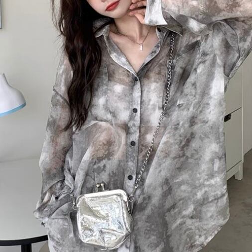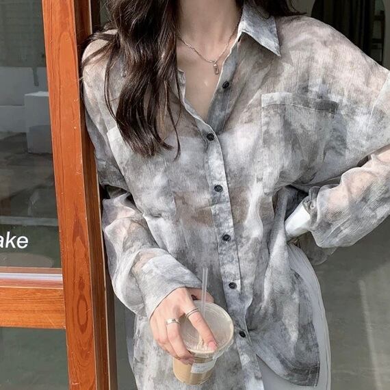 BL-0265 タイダイ柄 シャツ シースルー 長袖 トップス レディース シンプル 可愛い カジュアル お洒落