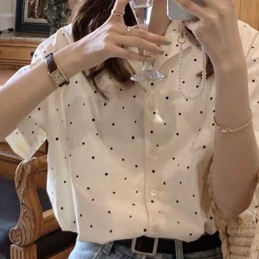 BL-0266 ドット柄 シャツ 襟付き 半袖 トップス レディース シンプル 可愛い カジュアル お洒落