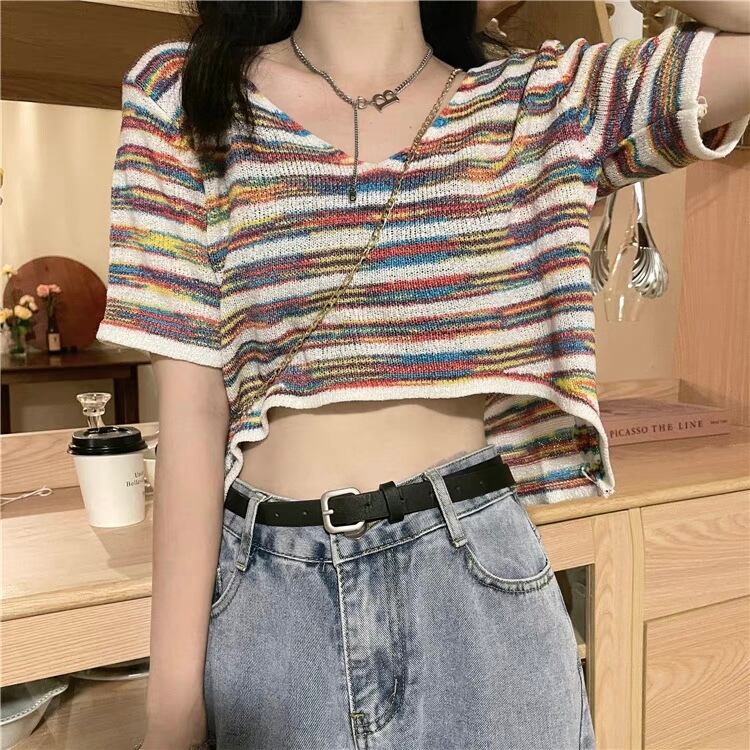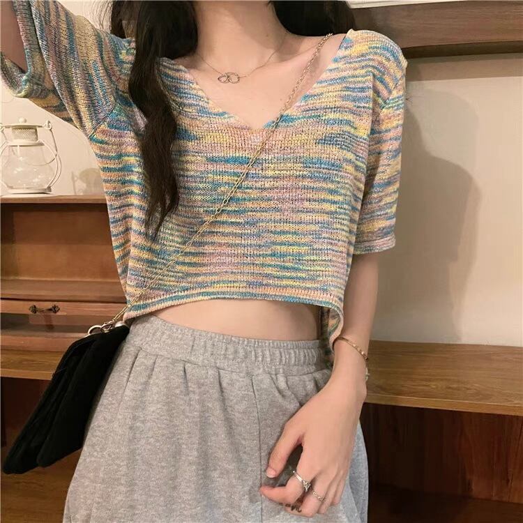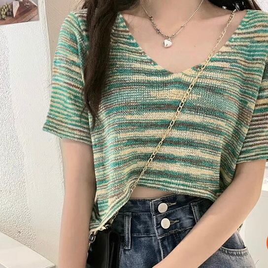 TS-0513 半袖 ニットTシャツ レディース カジュアル トップス シンプル 可愛い お洒落 薄手