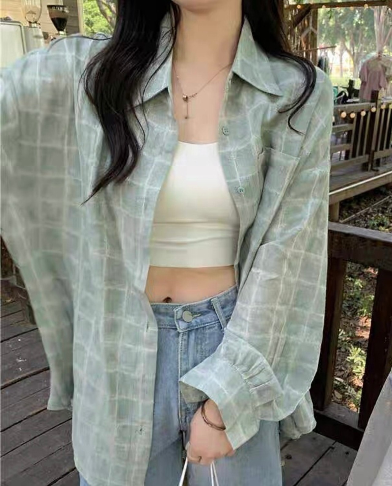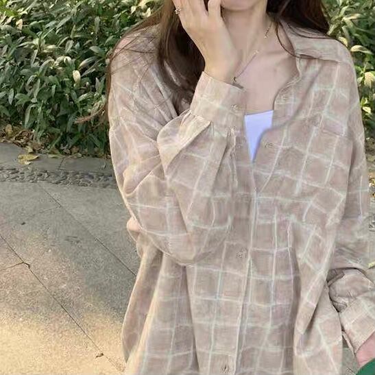 BL-0269 レトロ シャツ オーバーサイズ チェック レディース カジュアル トップス シンプル 可愛い お洒落