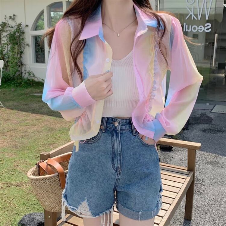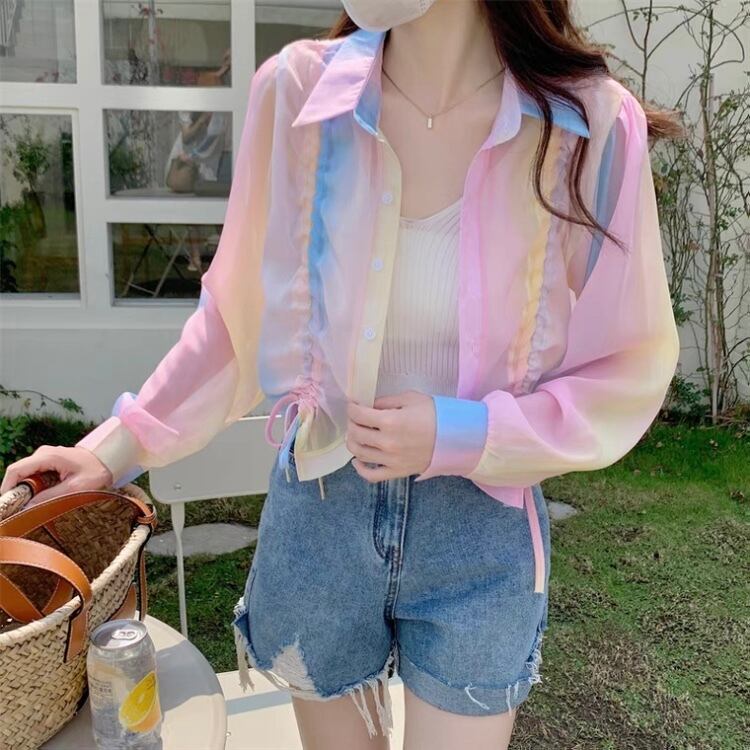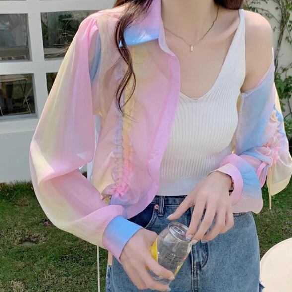 BL-0270 キャンディカラー カラフル ショート丈 シャツ レディース カジュアル トップス シンプル 可愛い お洒落