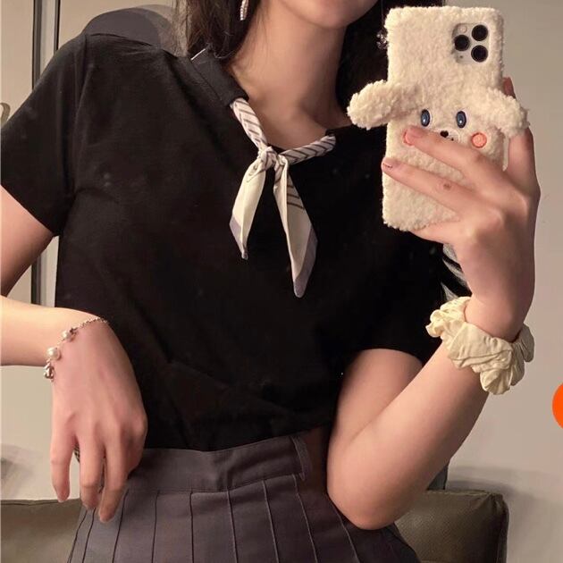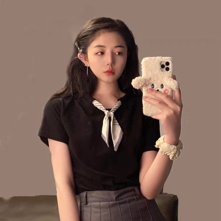 TS-0520 スカーフ 半袖 Tシャツ レディース カジュアル 上品 トップス シンプル 可愛い お洒落