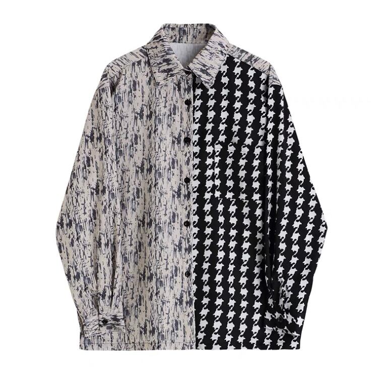 BL-0280 柄 千鳥格子 バイカラー ユニセックス シャツ ルーズ カジュアル トップス シンプル 可愛い お洒落