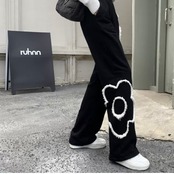 PT-0187 パンツ 花 刺繍 フリース スポーティ レディース シンプル 可愛い お洒落 カジュアル