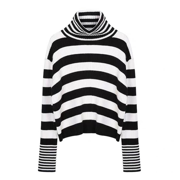 NT-0221 ベルスリーブ ハイネック ボーダー セーター レディース 秋冬 長袖 ニット カジュアル トップス シンプル 可愛い お洒落