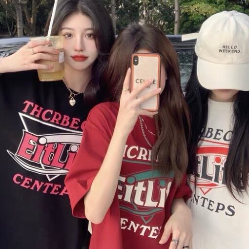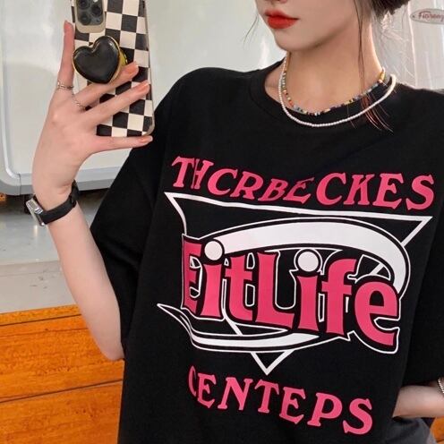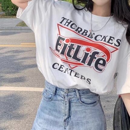 TS-0523 アメリカン レトロ 半袖 Tシャツ レディース オーバーサイズ ピュアコットン プリント カジュアル トップス シンプル 可愛い お洒落