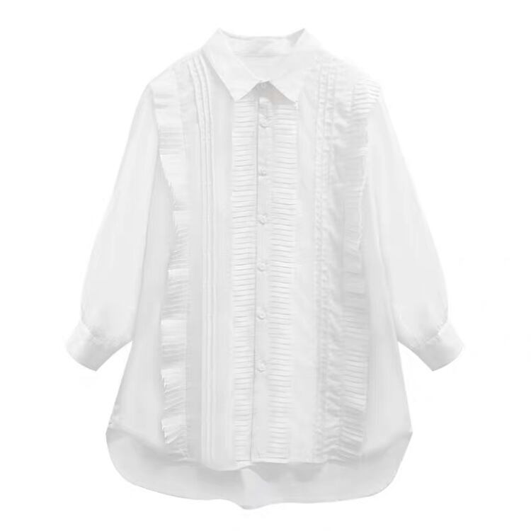 BL-0282 ミドル丈 プリーツ シャツ プレッピー レディース カジュアル トップス シンプル 可愛い お洒落
