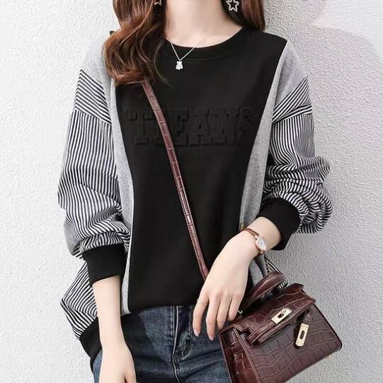 TS-0534 ラウンドネック ストライプ ステッチ トレーナー レディース カジュアル トップス シンプル 可愛い お洒落 長袖