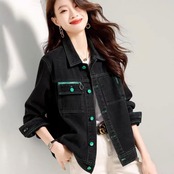 JK-0185 ブラック グリーン デニムジャケット レディース カジュアル トップス シンプル 可愛い お洒落 きれいめ クール