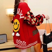 NT-0234 カーディガン ヒョウ柄 ポップ スマイル ニット ルーズ レディース カジュアル トップス シンプル 可愛い お洒落