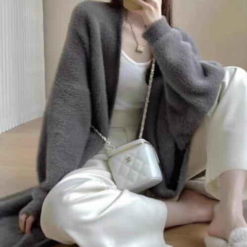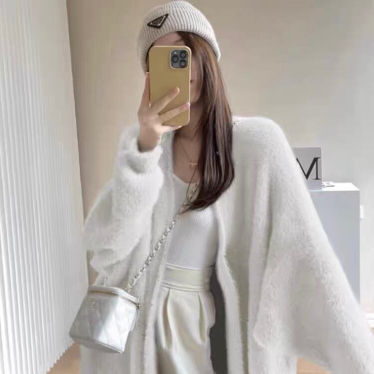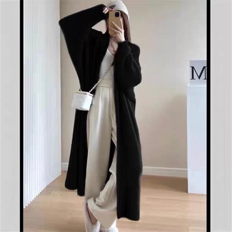 NT-0242 ロング 膝丈 カーディガン ニット ルーズ レディース カジュアル トップス シンプル 可愛い お洒落