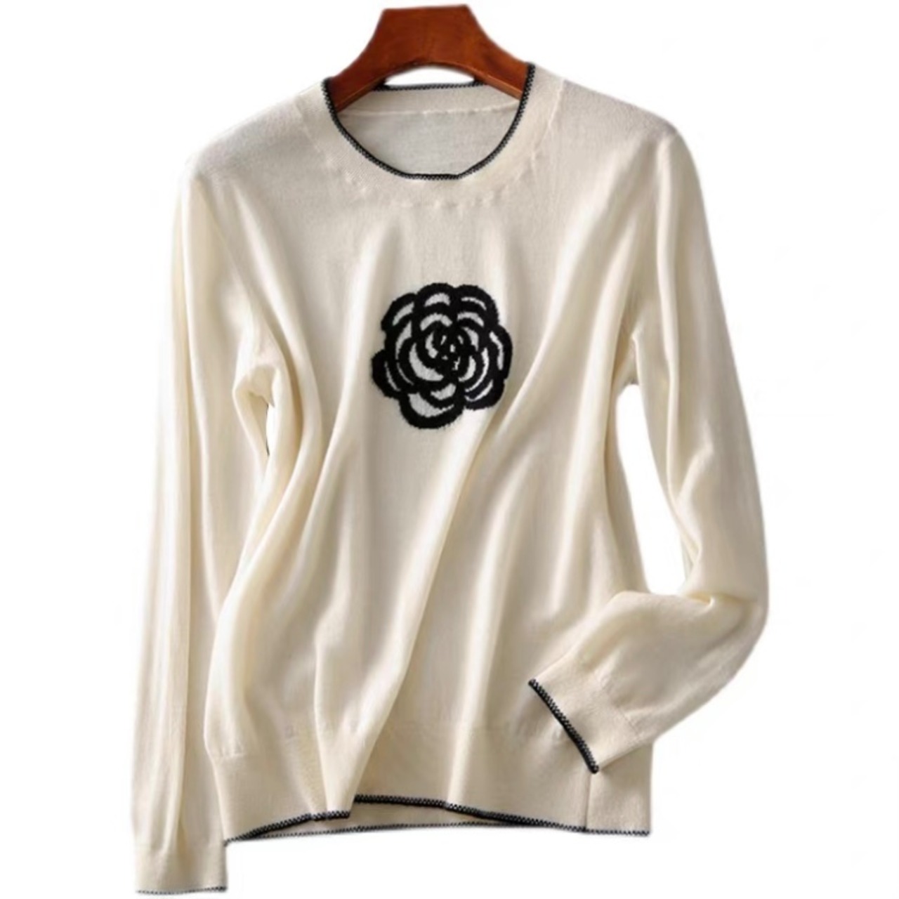 NT-0243 花 ニット ルーズ レディース カジュアル トップス シンプル 可愛い 上品 お洒落