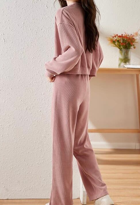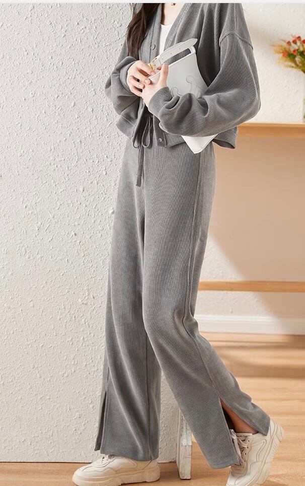 SU-0151 スウェット コーデュロイ パンツ スリット セットアップ 楽ちん シンプル 可愛い お洒落 カジュアル きれいめ