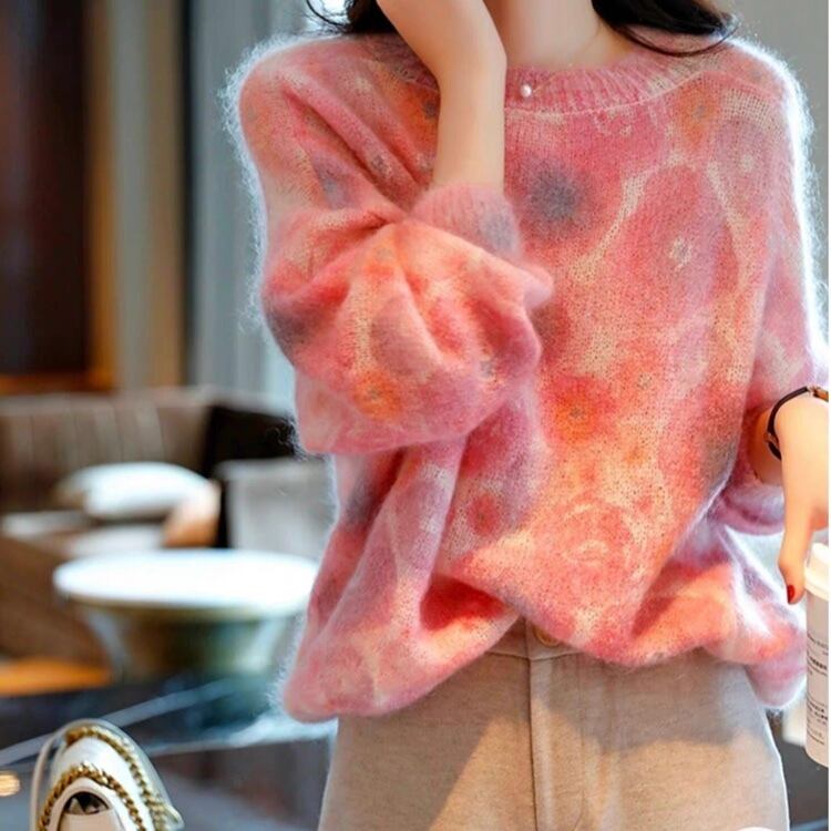 NT-0244 花 ニット ルーズ レディース カジュアル トップス シンプル 可愛い 上品 お洒落