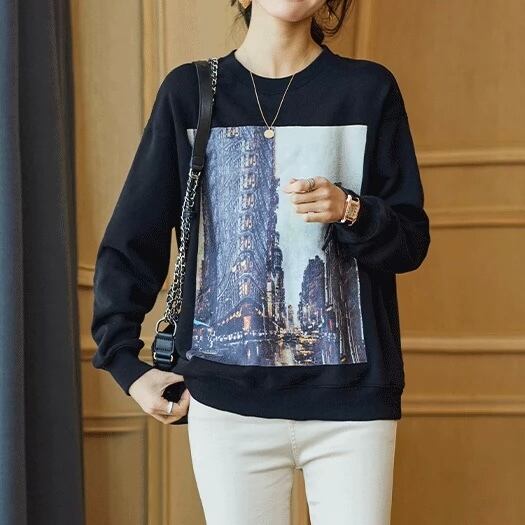 TS-0541 風景 長袖 トレーナー Tシャツ レディース カジュアル トップス シンプル 可愛い お洒落 きれいめ