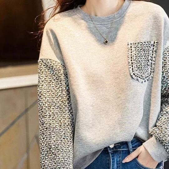 TS-0542 バイカラー 長袖 トレーナー レディース カジュアル トップス シンプル 可愛い お洒落 きれいめ