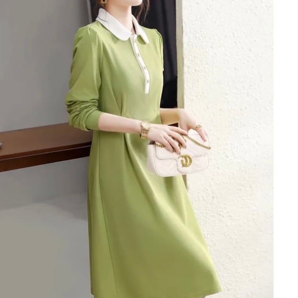 OP-0114 レトロ バイカラー ワンピース 膝丈 長袖 シンプル 可愛い お洒落 カジュアル 上品