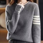 NT-0001 ライン コントラストカラー ラウンドネック ニット ルーズ レディース カジュアル トップス シンプル 可愛い 上品 お洒落