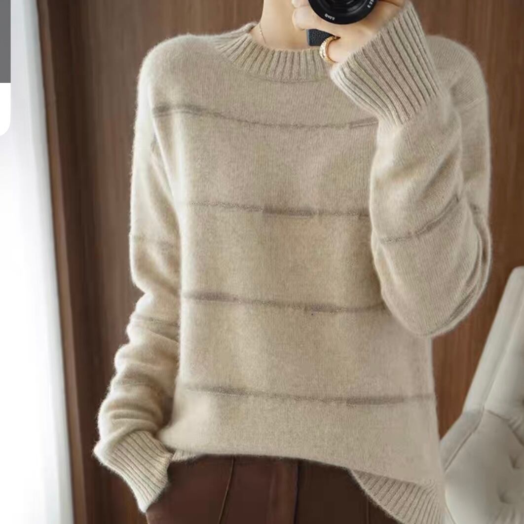 NT-0003 ライン ラウンドネック ニット レディース カジュアル トップス シンプル 可愛い 上品 お洒落