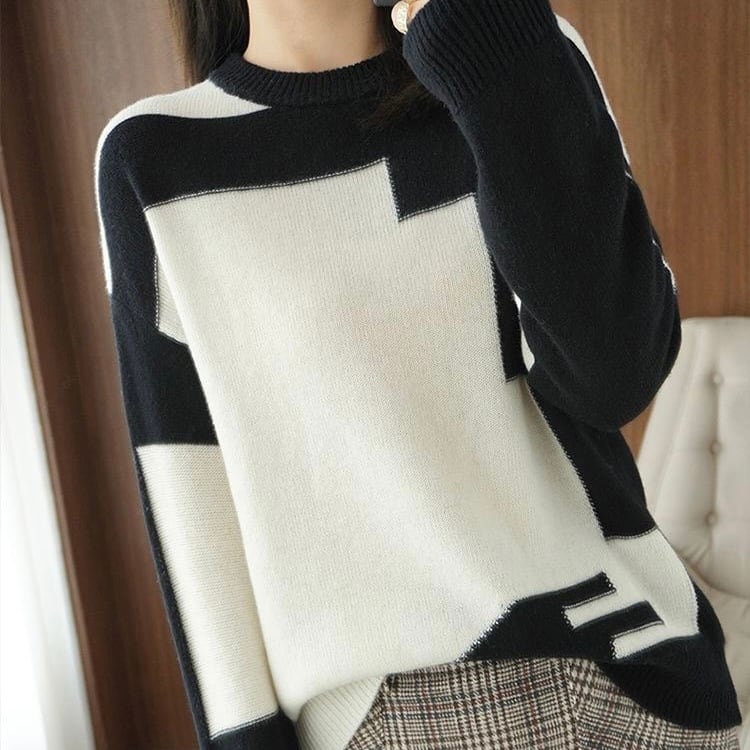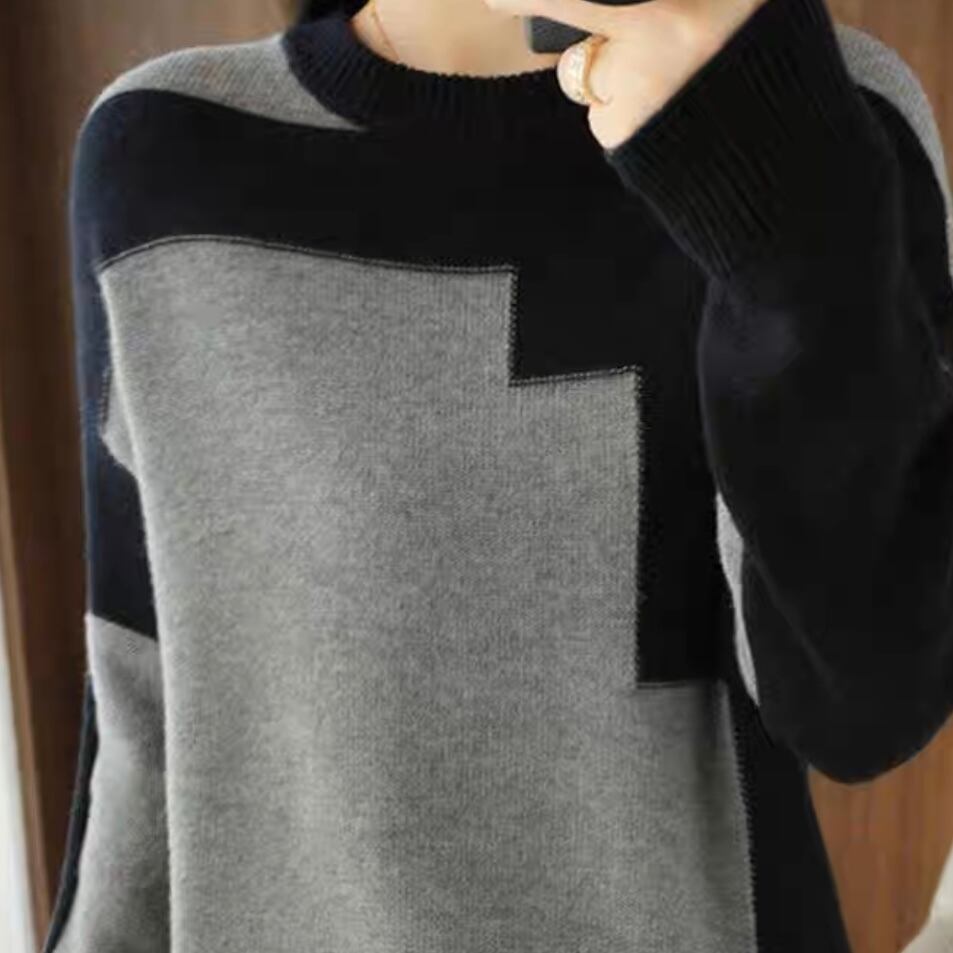 NT-0004 バイカラー 配色 ラウンドネック ニット レディース カジュアル トップス シンプル 可愛い 上品 お洒落