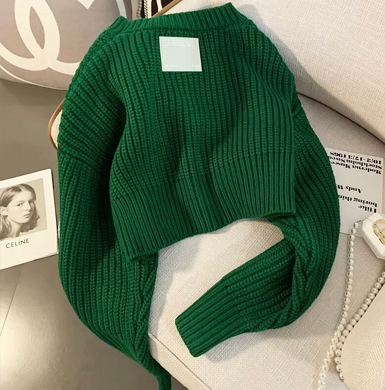 NT-0012 グリーン ショート丈 英字 ニット レディース カジュアル トップス シンプル 可愛い クール お洒落