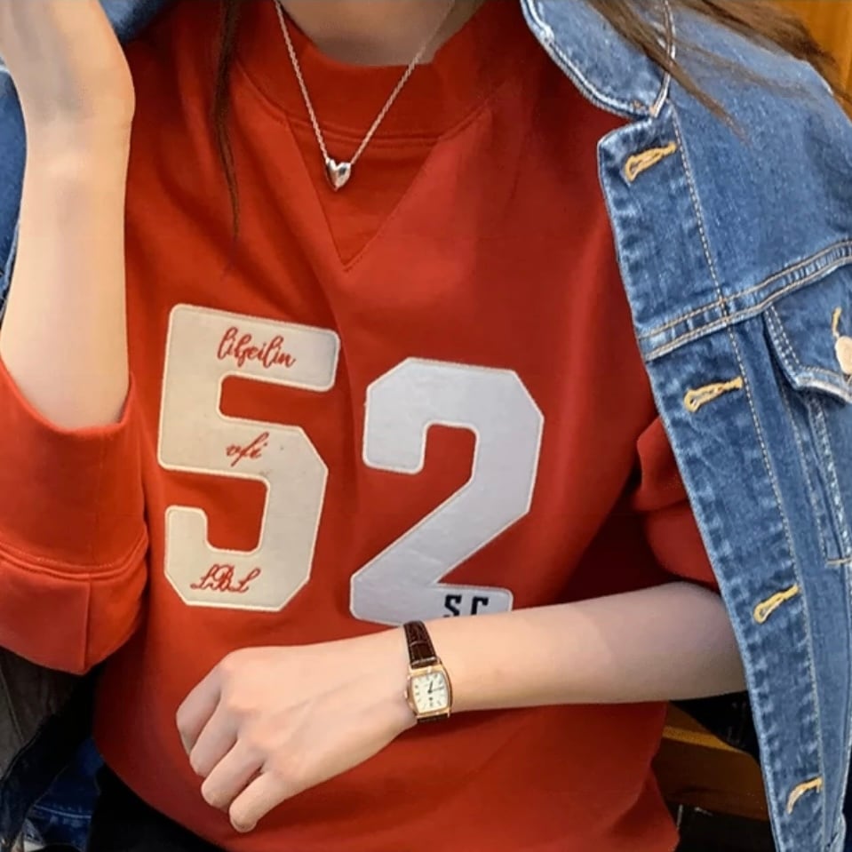 TS-0002 数字 ラウンドネック プルオーバー トレーナー ハート 長袖 レディース カジュアル トップス シンプル 可愛い お洒落