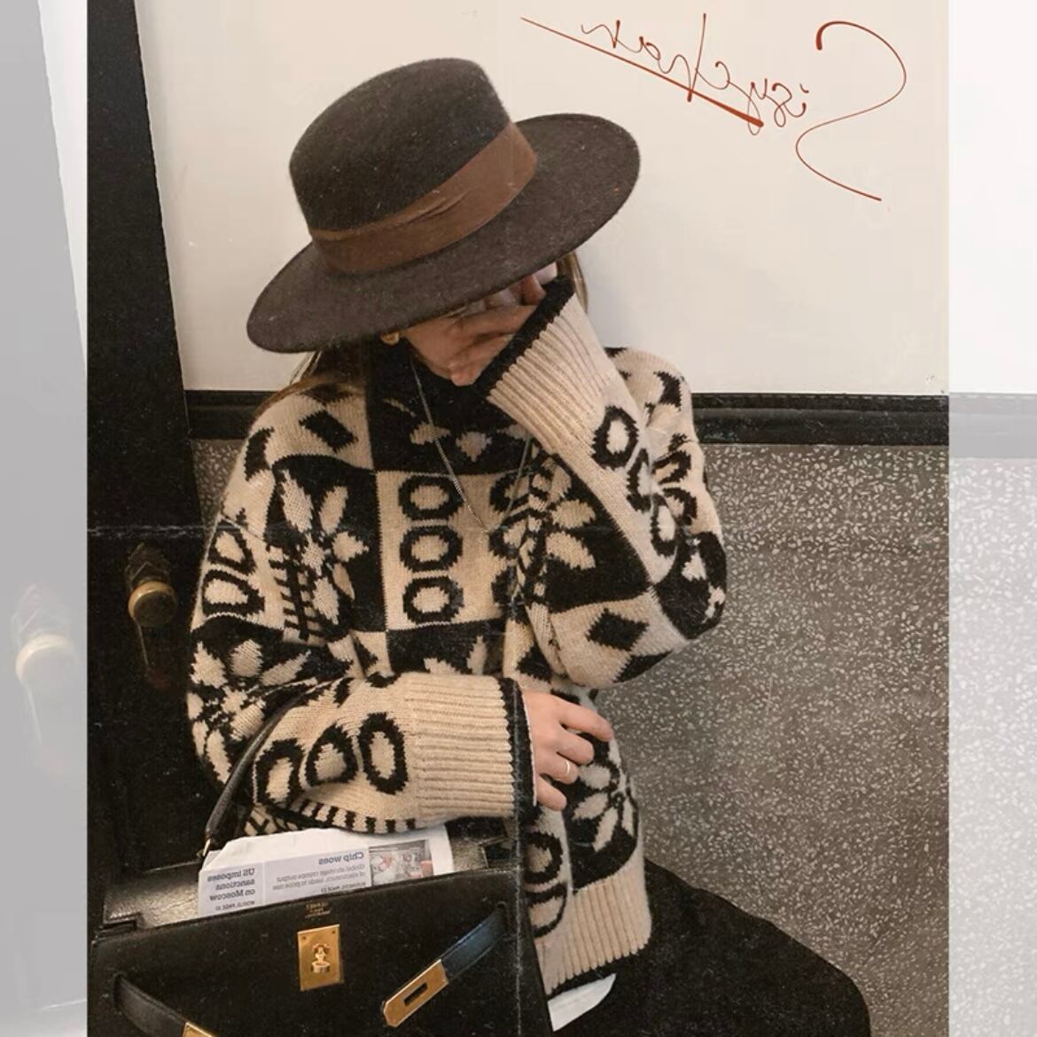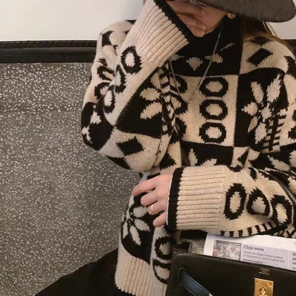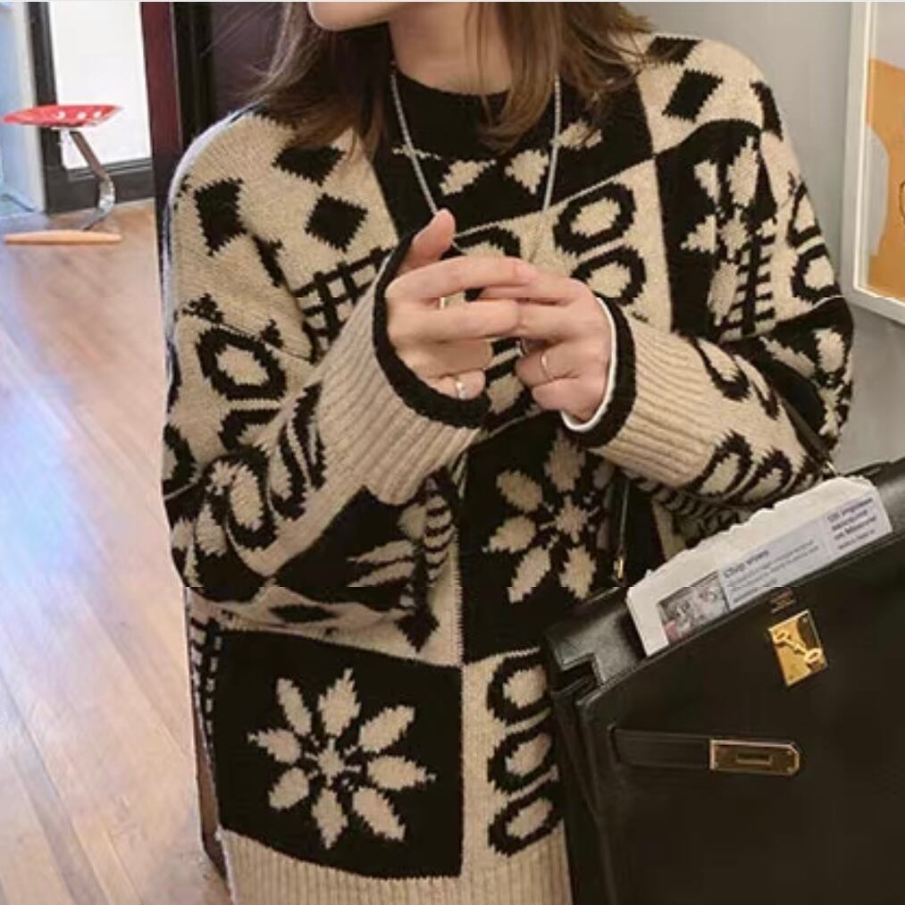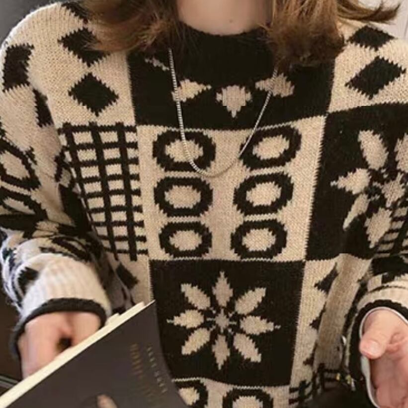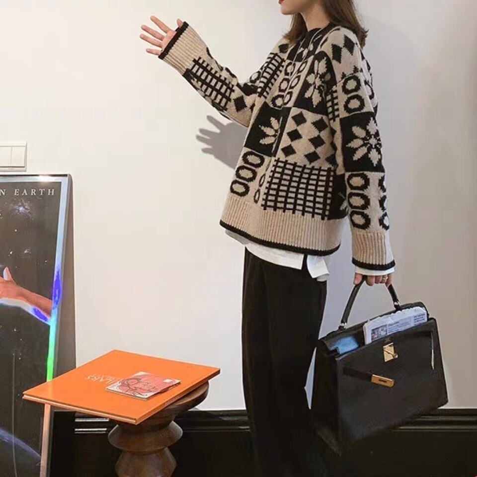 NT-0014 レトロ ジャカード ニット レディース カジュアル トップス シンプル 可愛い クール お洒落