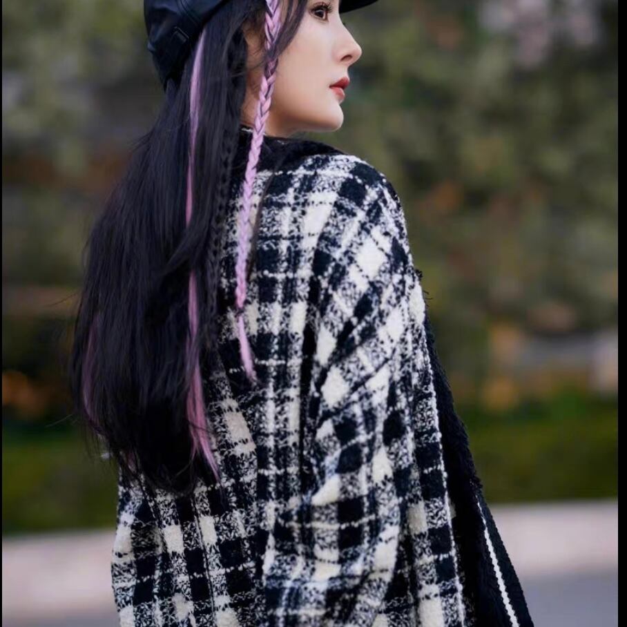 JK-0002 チェック ニット カーディガン ジャケット レディース カジュアル シンプル 可愛い お洒落 クール