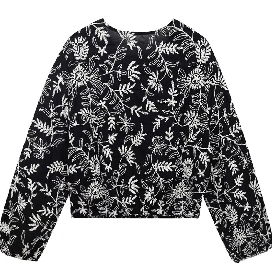 TS-0004 刺繍 レトロ 花柄 長袖 レディース カジュアル トップス シンプル 可愛い お洒落