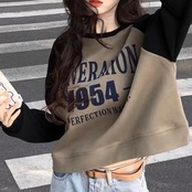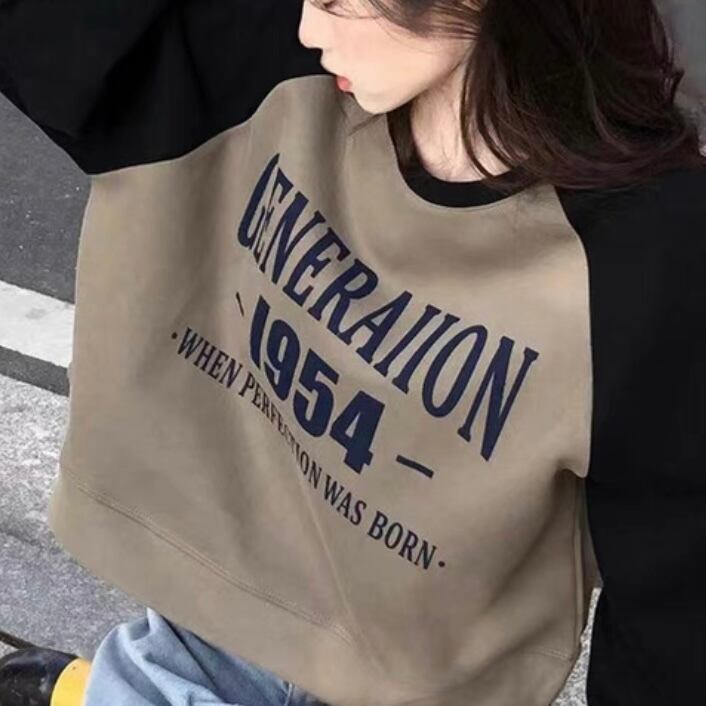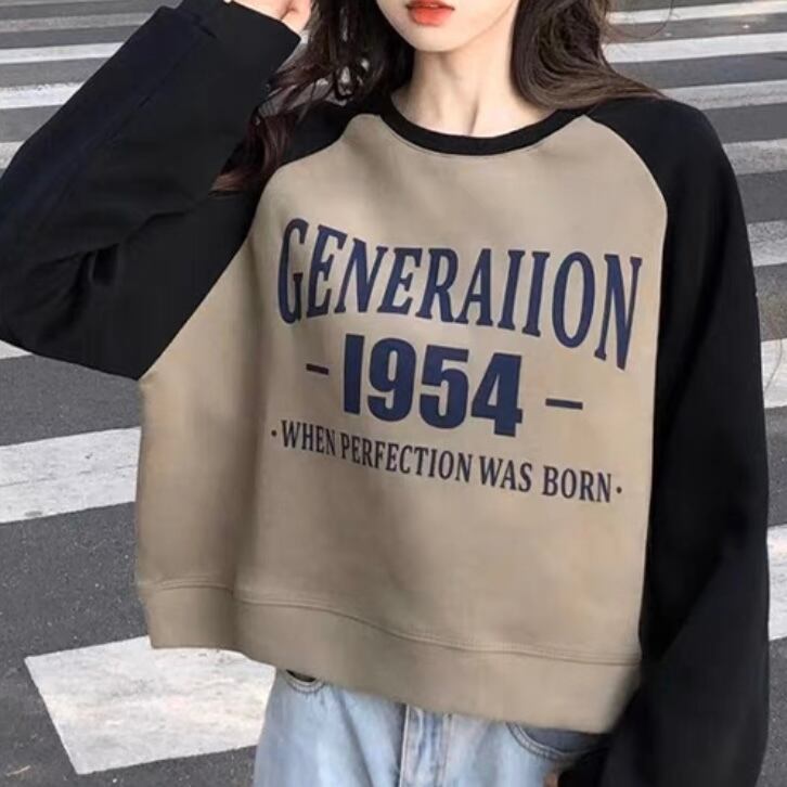 TS-0006 コントラストカラー レタープリント アメリカン ショート丈 トレーナー Tシャツ長袖 レディース カジュアル トップス シンプル 可愛い お洒落