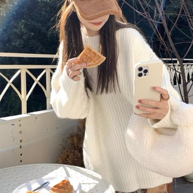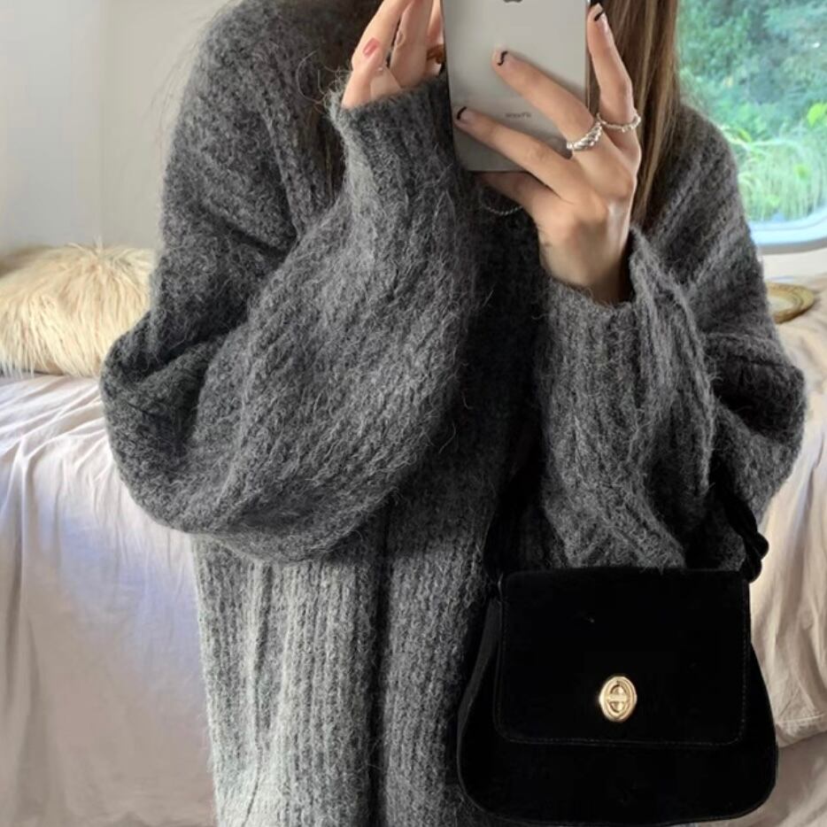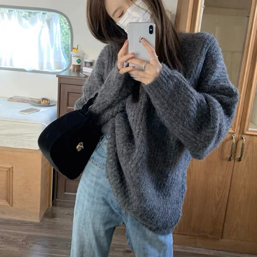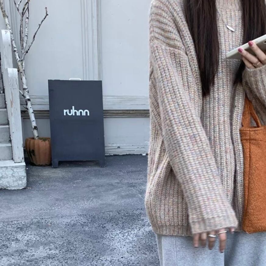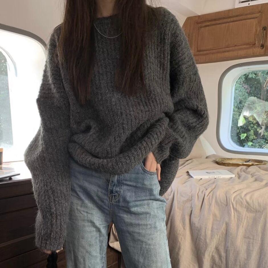 NT-0038 クルーネック ルーズ ニット レディース カジュアル トップス シンプル 可愛い ナチュラル お洒落