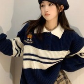 NT-0040 襟付き くま プレッピー ニット レディース カジュアル トップス シンプル 可愛い ナチュラル お洒落