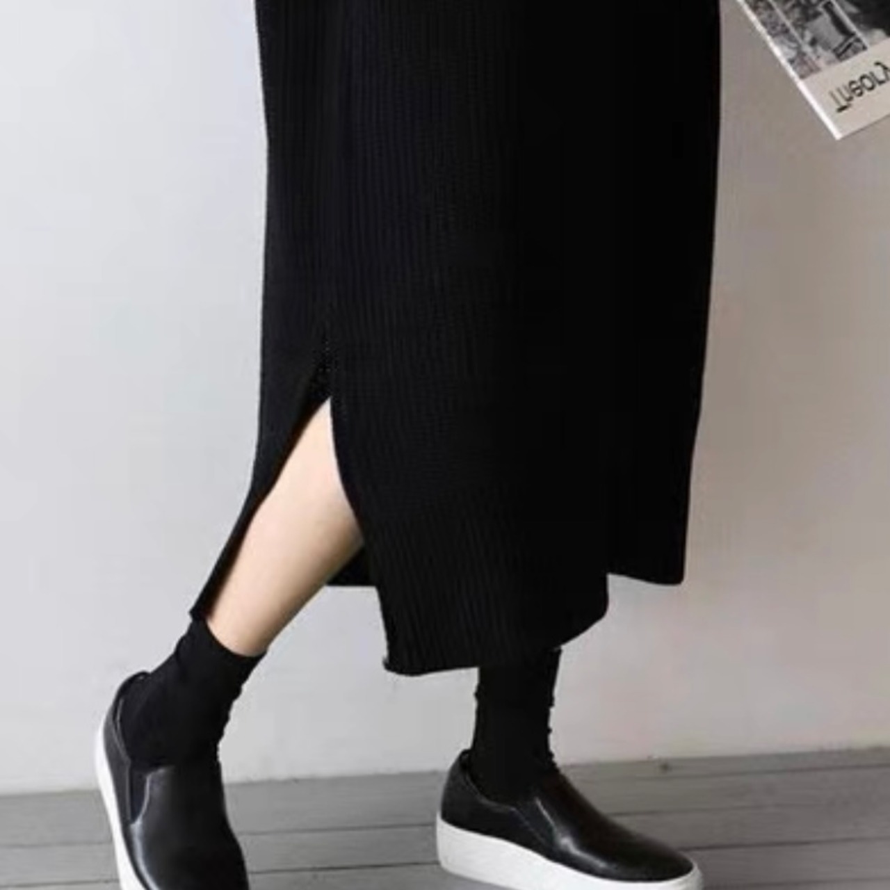 OP-0038 ルーズ ニット ワンピース ラウンドネック ロング丈 レディース カジュアル スリット シンプル 可愛い ナチュラル お洒落