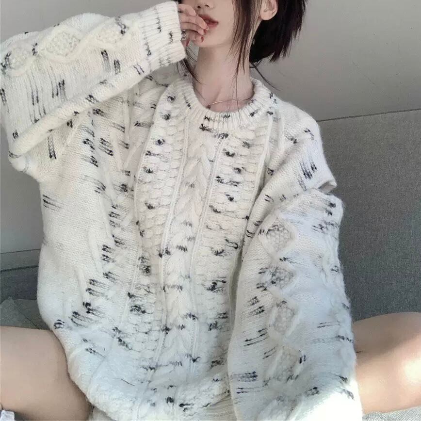 NT-0050 オーバーニット 切り込み ラウンドネック レディース ルーズ レディース カジュアル トップス シンプル 可愛い ナチュラル お洒落