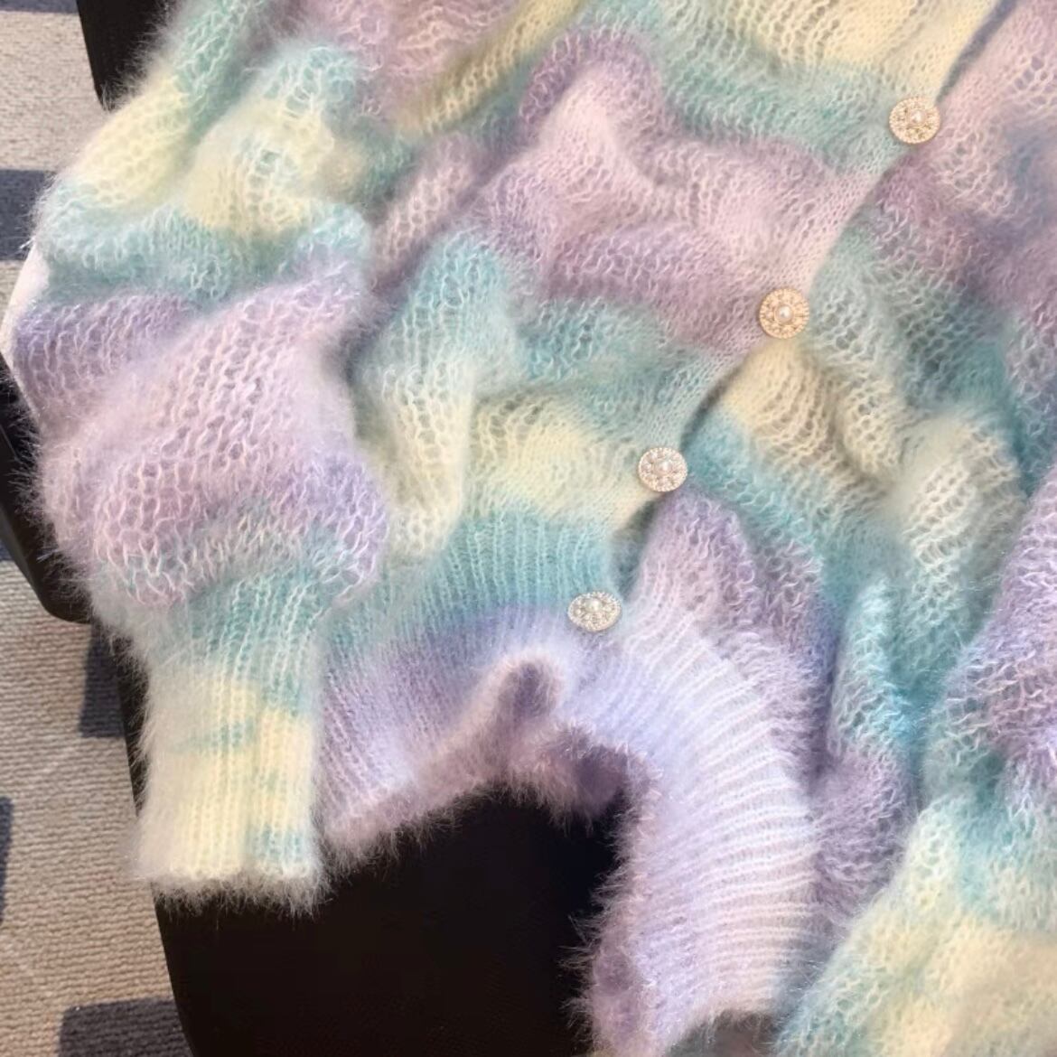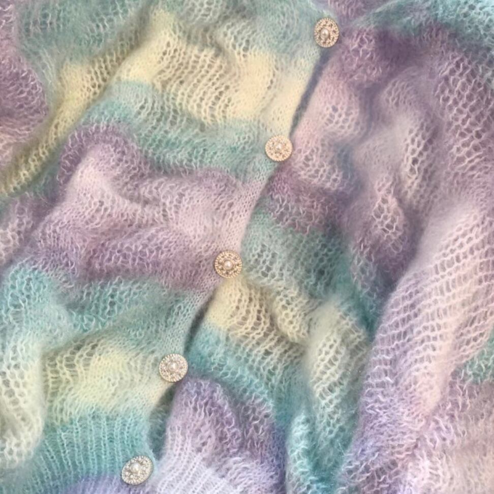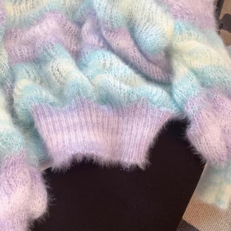 NT-0055 パステルカラー ストライプ ルーズ ニット カーディガン レディース カジュアル トップス シンプル 可愛い ナチュラル お洒落