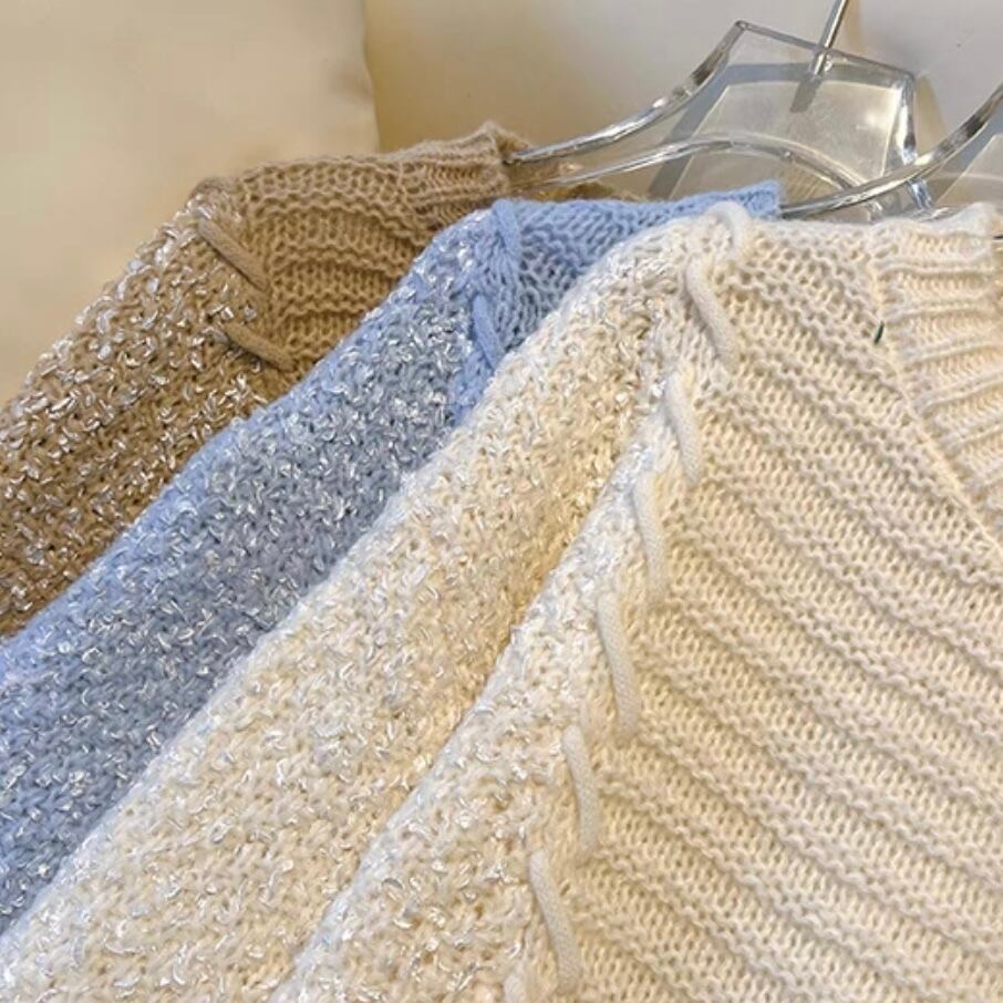 NT-0058 パッチ 紐 レトロ ニット レディース カジュアル トップス シンプル 可愛い ナチュラル お洒落