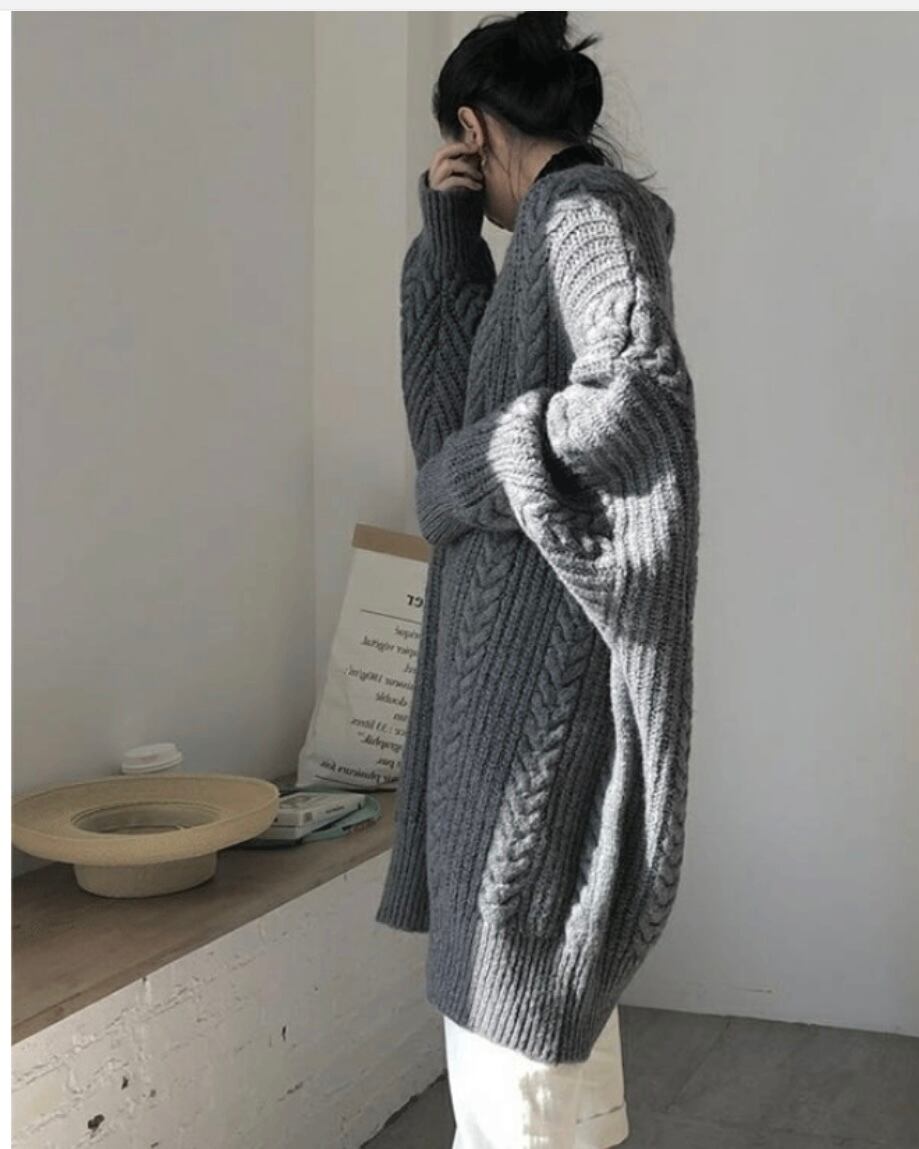 NT-0070 ツイスト ニット カーディガン ルーズ レディース ロング丈 カジュアル トップス シンプル 可愛い 上品 ナチュラル お洒落