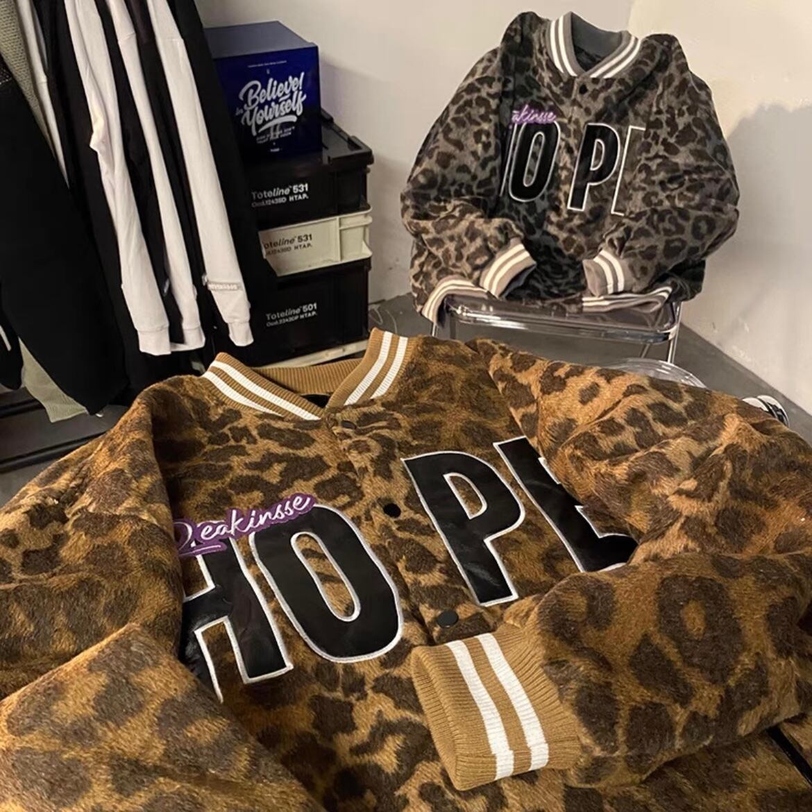 JK-0009 ビッグサイズ レオパード HOPE ジャケット レディース カジュアル シンプル 可愛い お洒落 クール