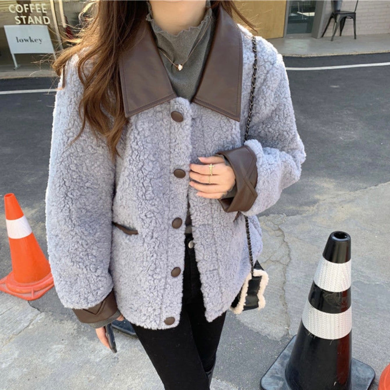JK-0010 もこもこ バイカラー ジャケット レディース カジュアル シンプル 可愛い お洒落 上品 クール