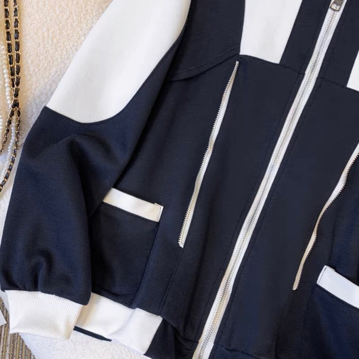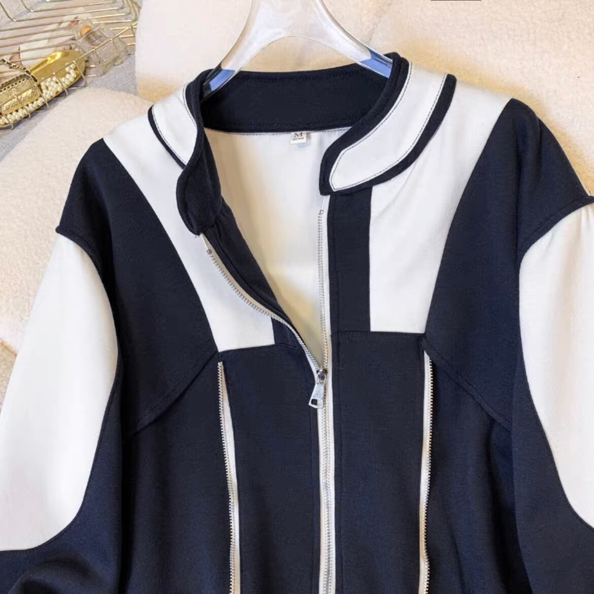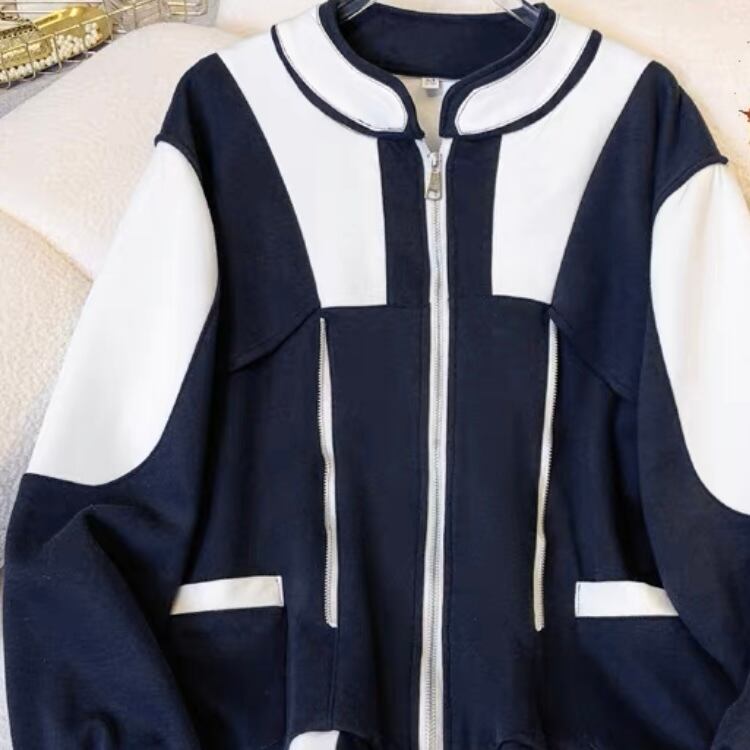TS-0023 配色 起毛 ジッパー レディース カジュアル トップス シンプル 可愛い クール ナチュラル お洒落