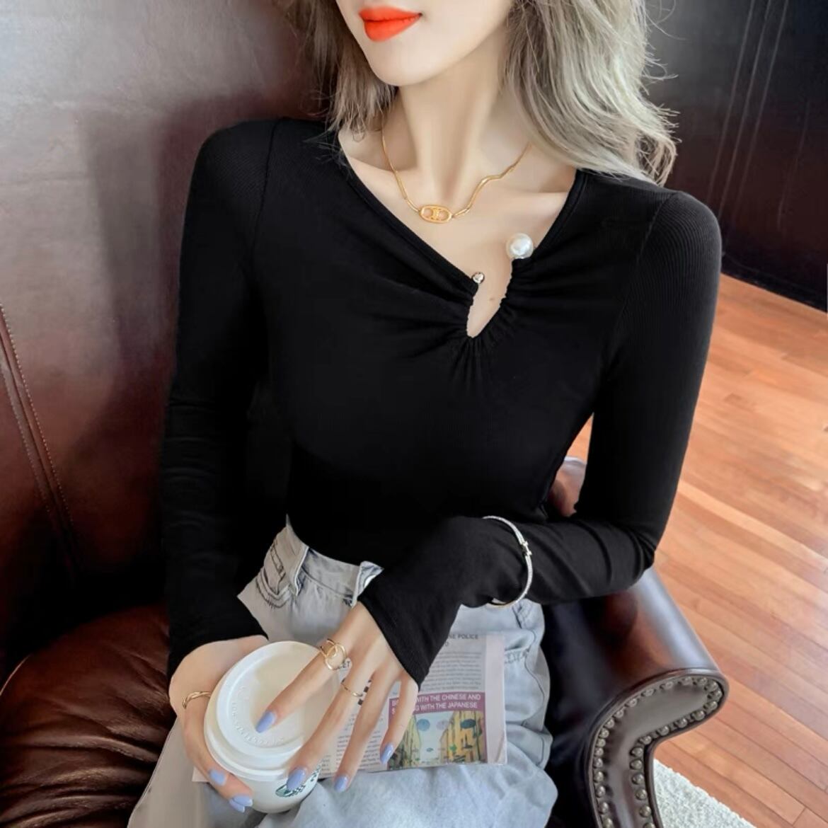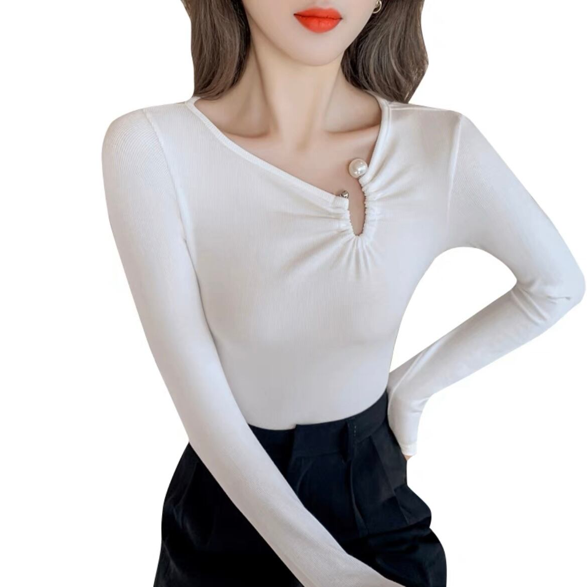 TS-0028 真珠 シンプル 長袖 Tシャツ レディース カジュアル トップス シンプル 可愛い ナチュラル お洒落
