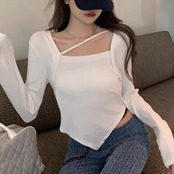 TS-0029 変形 シンプル 長袖 Tシャツ レディース カジュアル トップス シンプル 可愛い ナチュラル お洒落