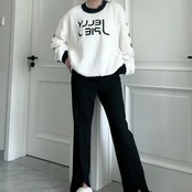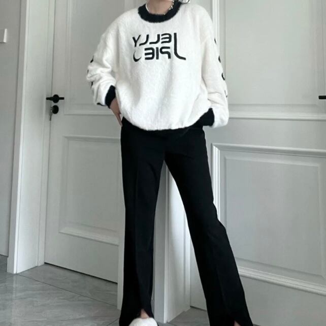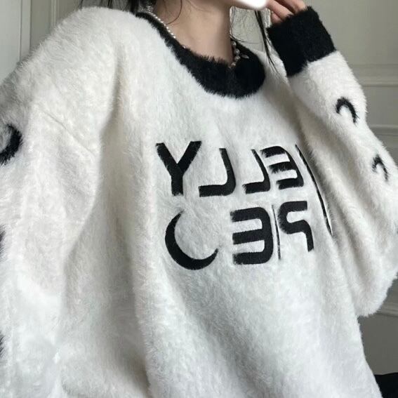 NT-0082 ムーン 英字 配色 ニット ラウンドネック レディース カジュアル トップス シンプル 可愛い クール ナチュラル お洒落